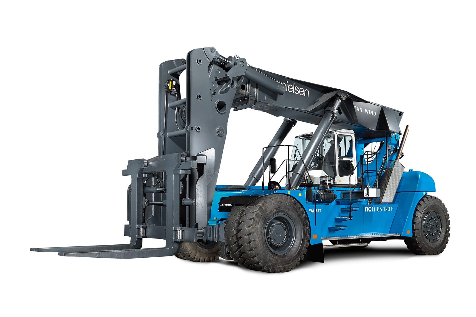De specialbyggda SMV-reachstackerna är enormt starka specialmaskiner som var för sig kan lyfta 85 ton och tillsammans 140 ton. De är faktiskt världens största teleskopgaffeltruckar – och som de första av sitt slag i Danmark har maskinerna utrustats med superstarka gafflar (gaffelfickor i aggregatet) samt förkortad och förstärkt bom till de tunga lyften.