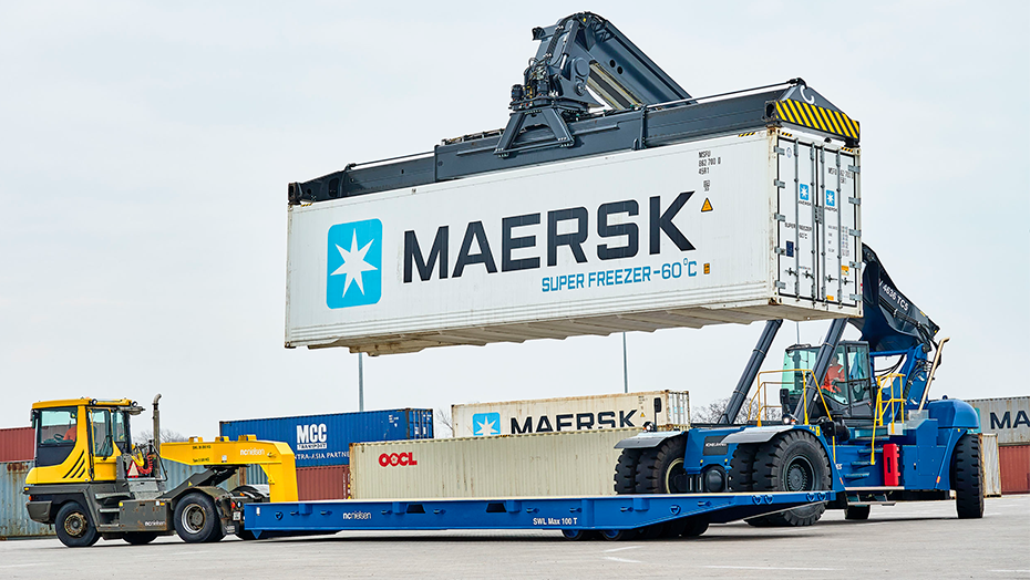 – Terminalen är dimensionerad för optimal drift. Det är även maskinerna och utrustningen från N.C. Nielsen. Vi har haft en positiv dialog, hittat en flexibel lösning och fått en stark maskinflotta levererad på kortast möjliga tid. Vi är beroende av de tre reachstackerna från Konecranes och de sätts verkligen på prov när ett containerskepp lägger till och det samtidigt myllrar av lastbilar på terminalen, säger Martin Bro Andersen och Nikolaj Klokholm, Operation Supervisors på APM Terminals.