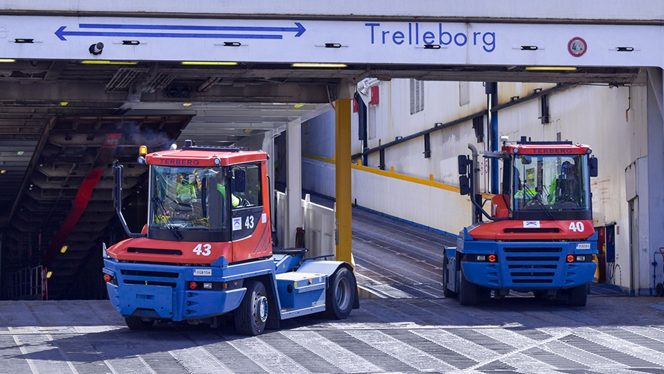 -Vi har ett genomsnittligt flöde av hela 2 400 lastbilar varje dygn, 365 dagar om året, säger Ulf Sonesson, Landlordchef på Trelleborgs Hamn AB. Det ställer naturligtvis väldigt stora krav på att vi har en anpassad maskinpark med terminaltraktorer som kan hantera godsflödet på bästa sätt. Som lite extra krydda på moset flyttas nu hamnen söderut och vi förlänger Sverige med 545 meter, säger Ulf. Under tiden entreprenaderna pågår måste dock verksamheten flyta på som vanligt utan störningar och förseningar. Liggtiden för fartygen blir allt kortare och kraven på en felfri hamnlogistik ökar. Kan vi inte lossa och lasta fartygen tillräckligt snabbt kostar det rederierna massor med pengar. Då är det av oerhörd vikt att vi har både personal och en fordonsflotta som kan leverera utan störningar, avslutar Ulf.